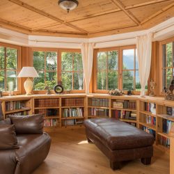 Unsere Aufgabe war es, für dieses idyllische Haus die Lärchenrahmentüren, die Haustüre, die Bibliothek, die beiden Sitzbereichen, die Decken, die Schrankräume, die Schlafzimmer und die Badezimmer zu fertigen. Auch Altholzarbeiten und Sondertürelemente in Brandschutzausführung zählten zu unserem Aufgabenbereich.