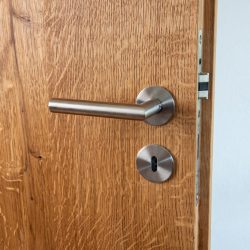 Bein diesem Projekt durften wir für eine junge Familie Innentüren aus Eiche fertigen, wobei besonders „lebendige“ Türen gewünscht wurden. Daher haben wir bei der Produktion der Türblätter und der Schichtplatten – wir fertigen diese sozusagen „direkt vom Baum weg“ – eine besonders lebhafte Eiche gewählt. Im Gegensatz zu zahlreichen Mitanbietern, welche meistens nur furnierte Türen produzieren, verwenden wir dicke Vollholz-Deckschichten. Dadurch sind auch Türen mit großen Ästen, Kern oder mit wilden Maserungen bei uns kein Problem, während furnierte Türen nur ein unnatürliches Astbild liefern.