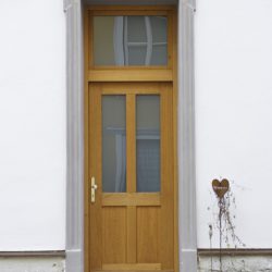 Bei diesem Projekt handelt es sich um ein denkmalgeschütztes Haus im Weinviertel. Perfekt zu den vorhandenen zweiflügeligen Kastenfenstern passen hier unsere Innentüren Modell Attersee und Model Weissenbach. Sowohl Fenster als auch Türen erstrahlen in edlem Weiß, wobei der hochwertige Lack per Hand mit dem Pinsel aufgetragen wurde: eine zwar aufwendige, aber perfekt zu diesem alten Gebäude passende Technik! Handwerkstechnik nach Maß kam auch aufgrund der verschiedenen Türgrößen zum Einsatz: da im Erdgeschoss die Türen etwas höher waren als im Obergeschoß, wurden hier die Türen mittig mit einer quer verlaufenden Füllung „verlängert“. Da die Türen im Obergeschoß mit einer Höhe von 200 cm über Standardmaß verfügen, wurde hier bewusst auf eine Querfüllung verzichtet, um kein gedrungenes Endbild zu generieren. Um große, glatte Flächen zu vermeiden, erhielten auch die Türstöcke in den dicken Wänden eine Füllung. Eine Besonderheit, die früher schon aus rein technischen Gründen nicht realisiert werden konnte. Bei der Kantenausführung fiel die Wahl auf eine Profilausführung, und zwar aus zweierlei Gründen: zum einen haben die Türen den nötigen Platz, um wirken zu können, zum anderen wurde diese Machart auch in früheren Zeiten in derartigen Häusern angewendet.