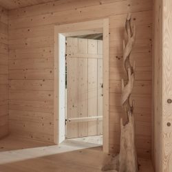 Bei dieser sehr netten Familie aus dem Bayrischen Raum durften, wir unsere Massivholztüren in ein sehr besonderes Haus einbauen. Besonderes Haus deswegen: In diesem Haus wird Ökologie und Nachhaltigkeit großgeschrieben und konsequent durchgezogen. Das Haus selbst, wurde aus massiven Fichtenblockwänden aufgebaut. Der Tannendielenboden ist aus dem eigenen Wald und wurde auf Polsterholz genagelt. Selbst die Badewanne in diesem Haus ist aus Holz gefertigt. Kennen gelernt haben wir die Familie auf der Messe in München, wo sie auf der Suche nach den passenden Türen waren. Recht schnell waren wir auf einer Wellenlänge und die Entscheidung fiel auf unser Modell Litzlberg aus Fichte. Diese Massivholztüre fertigen wir nach dem gleichen Prinzip, wie es vor 200 Jahren gemacht wurde. Echte handwerkliche Verbindungen werden ohne Leim zusammengesteckt und mit Holznägel aus Birnenholz fixiert. Passend dazu einen Pfostenstock mit Verkleidung. Weil bei Blockhäusern eine größere Setzungsluft einberechnet werden muss, haben wir die Verkleidung oben etwas höher angefertigt. Montiert haben wir diese Massivholztüren natürlich ohne Montageschaum. Hierfür haben wir zwei Möglichkeiten zur Auswahl. Da wir bei diesem Projekt genügend Platz zur Verfügung hatten, konnten wir die extra dafür entwickelten Montageklemmen verwenden. Ein Bild von diesen Klemmen, findet ihr unten in der Bildgalerie. Die entstandenen Hohlräume zwischen der Wand und dem Stock, wurden mit Schafwolle ausgestopft. Somit dämmen die Türen auch den Schall besser. Dichtungen gab es bei den alten Vorbildern dieser Türen keine. Wir wollten aber auf diesen Komfort beim Schließen nicht verzichten, da die Türen sonst knallen beim Schließen. Gummidichtungen kamen jedoch nicht in Frage und so kam mir die Idee mit den Lederriemen. Wir haben bei uns in Nußdorf noch einen Gerber – Gregor Kölblinger Gerberei GmbH – der seine Felle und das Leder weltweit vertreibt. Daraus werden hochwertige Pferdesättel, Schuhe, Gürtel usw. angefertigt. Solche Gürtel habe ich selbst im Kasten, die hat man ein Leben lang. Von meinen Besuchen in der Gerberei hatte ich in Erinnerung, dass er recht dicke und feste Lederhäute hat. Genau mit diesem Leder haben wir unsere Versuche für die Dichtung gestartet. Wir brauchten einige Versuche fanden dann aber die passende Abstimmung. Die Lederriemen haben wir dann schräg in das Holz eingeschnitten, damit sie eine federnde Wirkung haben. Es handelt sich hierbei um keine Dichtung wie bei unseren anderen Türen, sondern um einen Anschlagdämpfer. Das verwendete Leder wurde vegetabil gegerbt. Die Oberflächen der Türen wurden nur gebürstet und sind ansonsten unbehandelt. Genau wie bei allen anderen Oberflächen im Haus. Die Beschläge für diese Türen bekommen wir direkt von einem Schmied und können gerne bei uns bestellt werden. Eine Besonderheit ist das Heberiegelschloss, es macht bei jedem griff zur Türe Freude, es zu bewegen. Projekte dieser Art würde ich mir wieder mehr wünschen. Unsere Türen für dieses Haus entstanden nur durch regionale Handwerker, ohne Zwischenhändler und ohne großen Lieferwege. Die Wertschöpfung dafür erfolgt in einem Gebiet mit gleichem Lohnniveau, wo die Mitarbeiter nicht ausgebeutet werden und sich was schaffen könen. Das könnte eine Chance für die Zukunft sein.