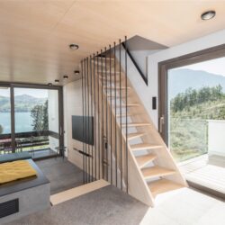 Die Innentüren sollten sich etwas herausnehmen und zurückhalten, darum kamen weiße, matte lackierte Türen zum Einsatz, in mauerbündiger Ausführung. Die Türen im Dachgeschoß haben wir passend zu den Dachschrägen angefertigt.
