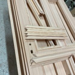 Aus ein paar Holzpfosten zaubert Hermann, unser Profi für Haustüren und Tische, hier wieder zwei schöne Lärchenhaustüren mit geschnitzten Füllungen. Bilder von den fertigen Haustüren folgen noch.